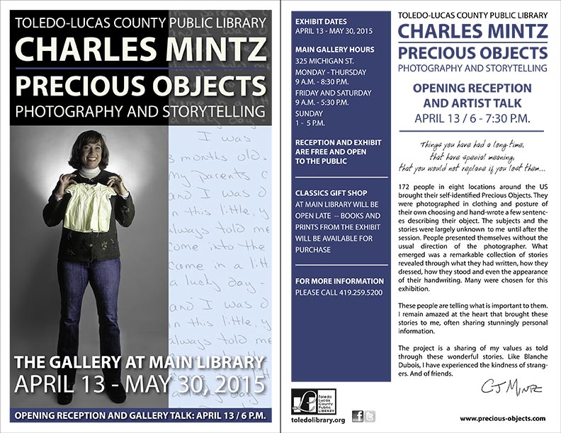 I am been profoundly negligent on getting publicity out on this. This is sort of the year of Toledo for me. The Library is just around the corner from TMA. The interior is filled with Vitrolite architectural glass and is, all in all, a very cool place. Hope some of you can make it to the reception on 4/13 at 6
